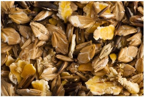 60% ječmenné vločky, 30% kukuřičné vločky a 10% vločky z černého ovsa.