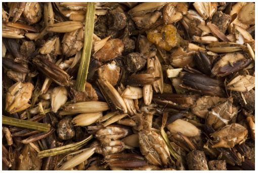 Celozrnné ovesné vločky 34 %, ječmenné vločky, vláknina z cukrové řepy, kukuřičné vločky, rýžové klíčky, směs olejů ze semínek (lněné semeno, slunečnicové semeno) 4,0 %, pšeničné otruby, melasa z cukrové řepy, kukuřičné klíčky, jablečný sirup, směs olejů (lněný olej, slunečnicový olej) lisovaných za studena 3,5 %, vojtěšková řezanka, vápník z mořských řas, himálajská sůl, moučka z mořských řas, jablečné výlisky, pšeničné klíčky, pivovarské kvasnice, ovocný ocet.