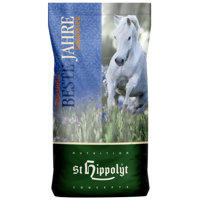 Vysoce kvalitní vláknina a byliny mohou kompenzovat nedostatky v živinách v oblasti výživy. Za studena lisované oleje ve spojení s obzvláště velkým množstvím přírodních komponent a stopových prvků zajišťují vynikající zastoupení živin. Tak je zajištěn předpoklad pro potlačení nutričních nedostatků souvisejících s věkem, které mohou vést k alergiím, ekzémům, dýchacím problémům a poruchám trávení. Vital Müsli Beste Jahre je vhodný nejen pro seniory, ale také pro citlivé a náročné koně, stejně jako krmivo v období klidu jako podpora proti ztrátě hmoty.